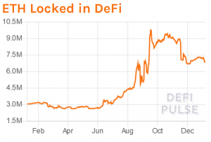 On September 17, 2020, the amount of ETH locked in DeFi had reached its peak, recording an all-time high of ETH 9.771m, according to DeFi Pulse data. At the time of writing, it's ETH 6.845m, or 30% less.