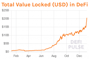 Furthermore, a significant number of BTC has left DeFi as well over the past two months or so. Looking at the DeFi Pulse chart, we see the number of BTC locked at DeFi peaking at 64,993 on October 22, 2020. It then began a steady downward course, with a few minor spikes along the way, reaching BTC 30,918 on January 6. This means that it dropped by 52% in total since its all-time high less than three months ago.