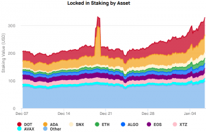 Lastly, looking at the locked in staking by asset data provided by Staking Rewards, ETH is in the fourth place, after polkadot (DOT), cardano (ADA), and synthetix (SNX), respectively.
