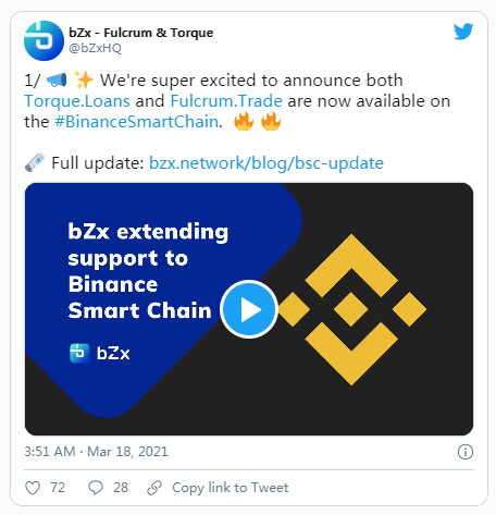 The platform stated that its margin trading, borrowing, and lending products Torque and Fulcrum will be moving to BSC but it will remain “Ethereum focused.”