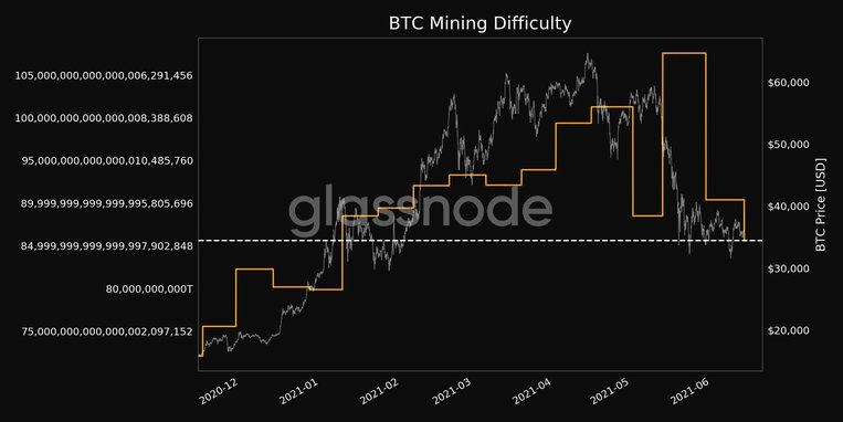 After the latest crackdown from China on Bitcoin mining and the declining hash rate, the mining difficulty has gone through another adjustment. As a result, the metric has dropped by 20% in less than a month to a 5-month low.