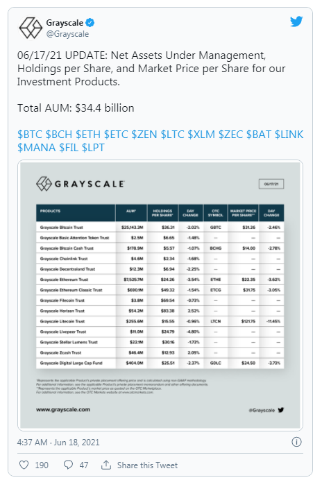 Grayscale did introduce five new trusts on March 17, launching products for Basic Attention Token, Chainlink, Decentraland, Filecoin, and Livepeer. These five trusts currently represent just 0.1% of Grayscales $34.4 billion in assets under management (AUM).