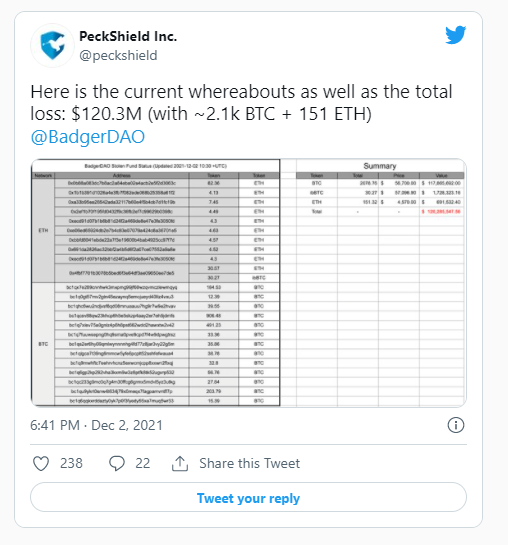 Meanwhile, PackShield listed the funds that were transferred out during the attack on Twitter, revealing brutal losses, crossing $120 million.