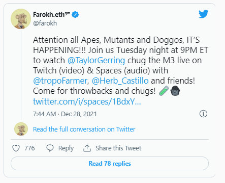Gerring announced he will livestream the Mega Mutant Ape reveal on Twitter, and caused quite a stir among the BAYC community.