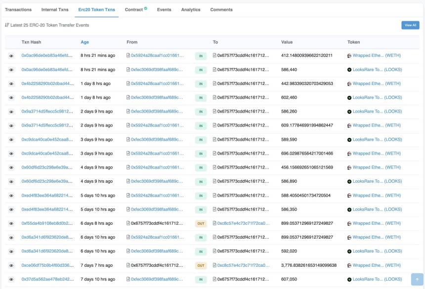 Reported LooksRare Tornado Cash Address Source:EtherScan