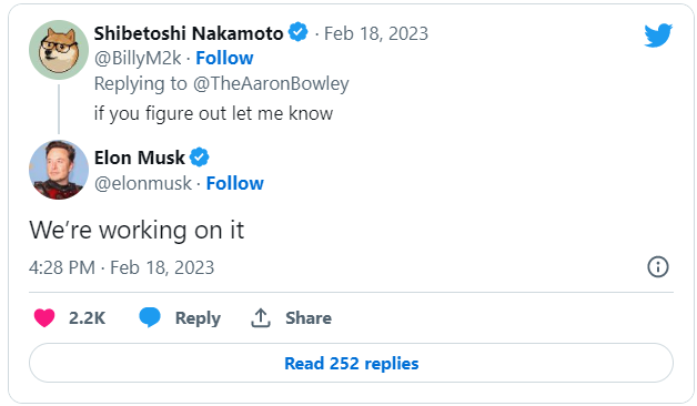 WikiBit 2023-02-18 22:01Elon Musk, the CEO of Twitter, has confirmed that his team is currently developing a plan to enable Twitter users to earn money from their content. It remains to be seen whether this new feature will include support for Dogecoin.