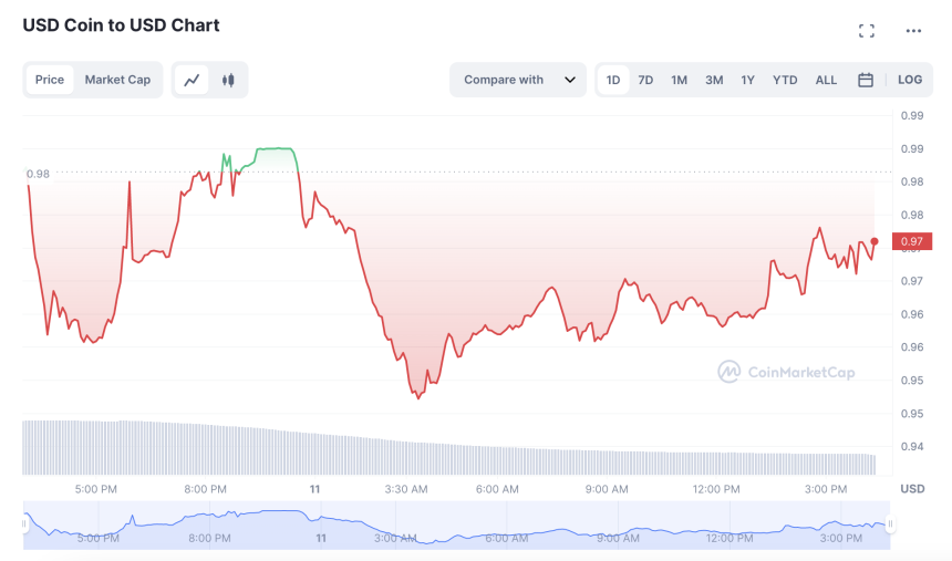 USDC slowly recovers after losing its $1 peg on March 11. Source: CoinMarketCapMarch 11: Contagion fears spread