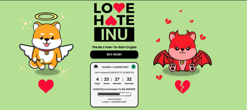 Love Hate Inu is a vote-to-earn (V2E) crypto project deployed on the Ethereum blockchain that has just breached the $1 milestone within a week and a few days.