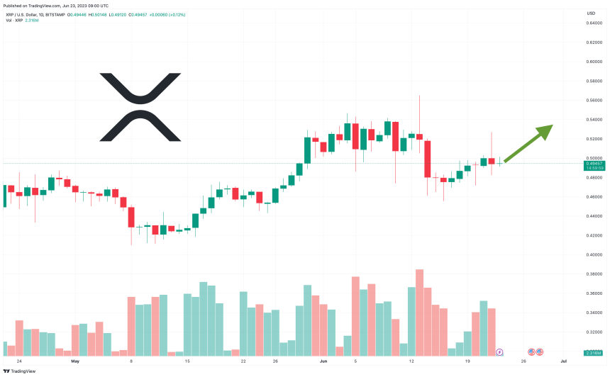 WikiBit 2023-06-19 06:30The XRP price has dropped by 3.5% in the past 24 hours, with its fall to $0.493229 coming as the cryptocurrency market as a whole suffers a 1% dip.