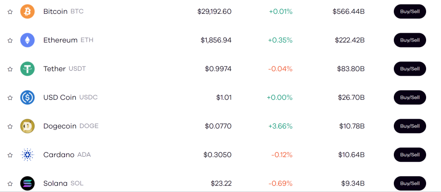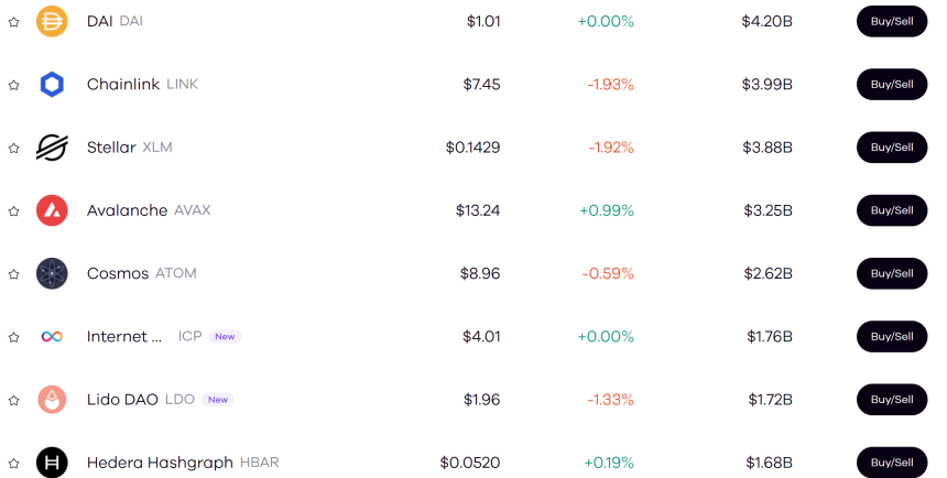 | Cryptocurrencies Offered/Available | Bitcoin (BTC), Ethereum (ETH), and others |