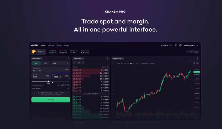 Navigate to Kraken Pro: Once your account is funded, access Kraken Pro, the advanced trading platform. It combines spot and margin trading in one interface.