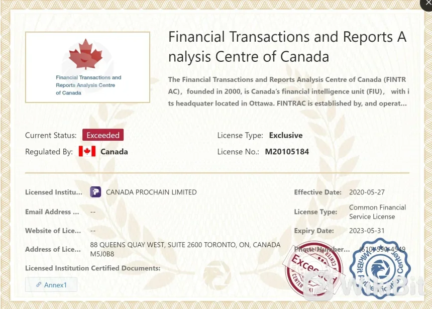Firstly, the Financial Transactions and Reports Analysis Centre of Canada (FINTRAC), founded in 2000, serves as Canada's financial intelligence unit. Operating under the framework of the Proceeds of Crime (Money Laundering) and Terrorist Financing Act (PCMLTFA) and its Regulations, FINTRAC's primary mission involves detecting, preventing, and deterring money laundering, terrorist financing, and other threats to Canada's security. ProEX holds an Exclusive Common Financial Service License with license number M20105184, governed by FINTRAC.