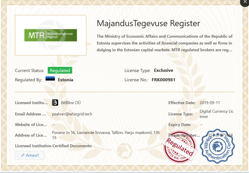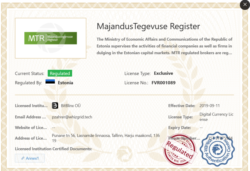 Regulatory Compliance: BITBLINX operates under regulatory oversight and holds digital currency licenses issued by the MajandusTegevuse Register, demonstrating a commitment to compliance.