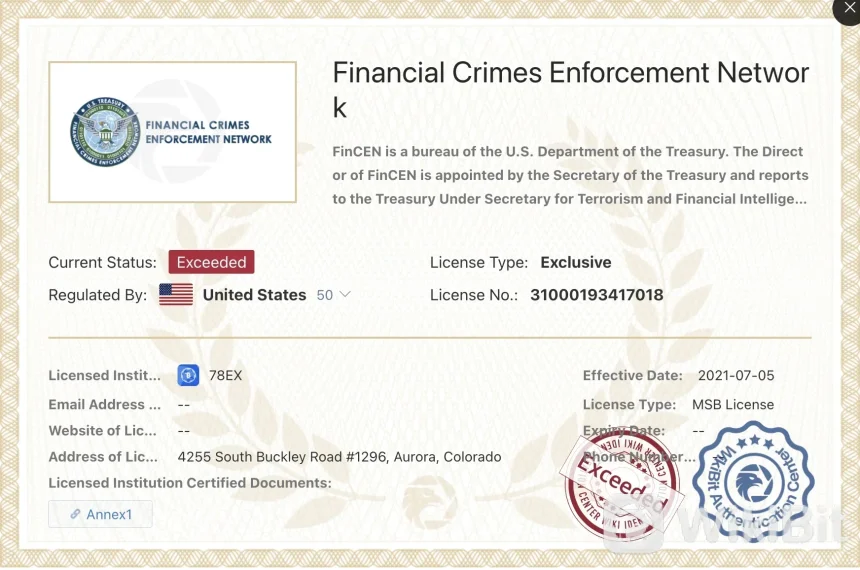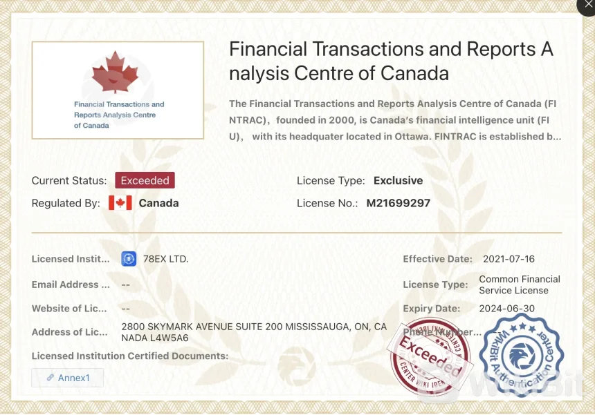 The Financial Transactions and Reports Analysis Centre of Canada (FINTRAC) is Canada's financial intelligence unit established under the Proceeds of Crime (Money Laundering) and Terrorist Financing Act. It is responsible for detecting, preventing, and deterring money laundering, terrorist financing, and threats to Canada's security. Similarly, the Financial Crimes Enforcement Network (FinCEN) operates within the U.S. Department of the Treasury and aims to safeguard the financial system from illicit activities, combat money laundering, and enhance national security through the collection, analysis, and distribution of financial intelligence. Both agencies play vital roles in their respective countries by ensuring the integrity of financial systems and preventing financial crimes. However, these regulatory agencies, FINTRAC and FinCEN, have provided regulation and licensing to 78EX exchange. The exchange has exceeded the regulatory requirements set by these agencies and holds respective licenses, which demonstrate compliance with financial service regulations.