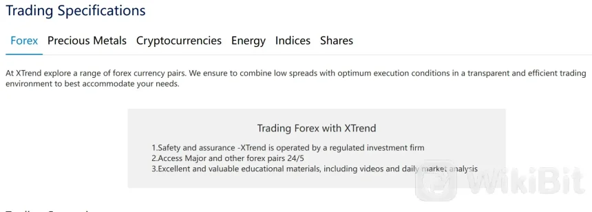 In addition to cryptocurrencies, XTrend also provides other trading instruments for their traders, such as: