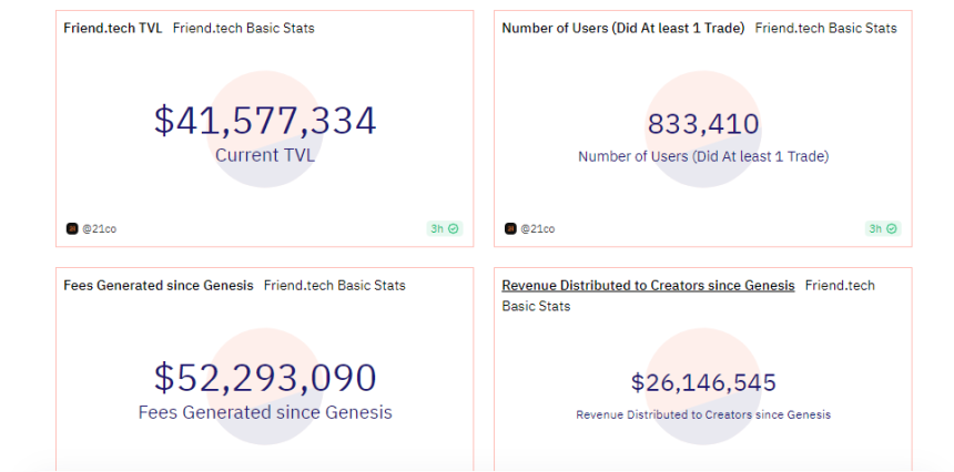Friend Tech data has recently encountered a downward trajectory, with its primary data hitting all-time lows.