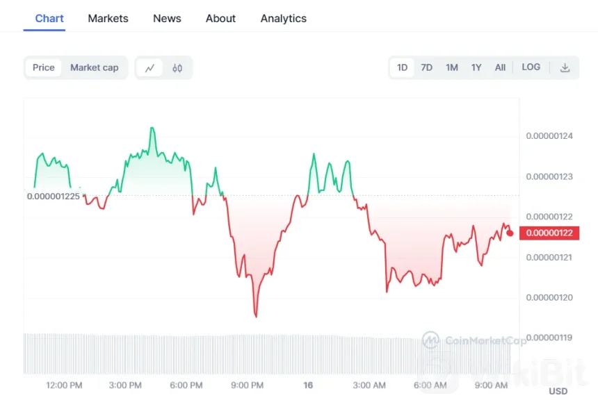 The popular meme coin, Pepe Coin has continued to gain investors attention, as evidenced by the ongoing discussions over the crypto on social media platforms. However, the Pepe Coin price was down 0.91% to $0.000001216 on Tuesday, with its trading volume dropping 12.35% to $54.18 million. However, over the last seven days, it has added about 2.27% in its price.