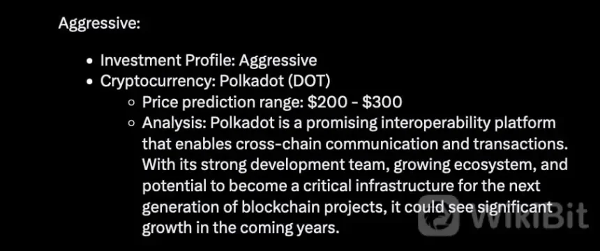 “Polkadot is a promising interoperability platform that enables cross-chain communication and transactions. With its strong development team, growing ecosystem, and potential to become a critical infrastructure for the next generation of blockchain projects, it could see significant growth in the coming years.”