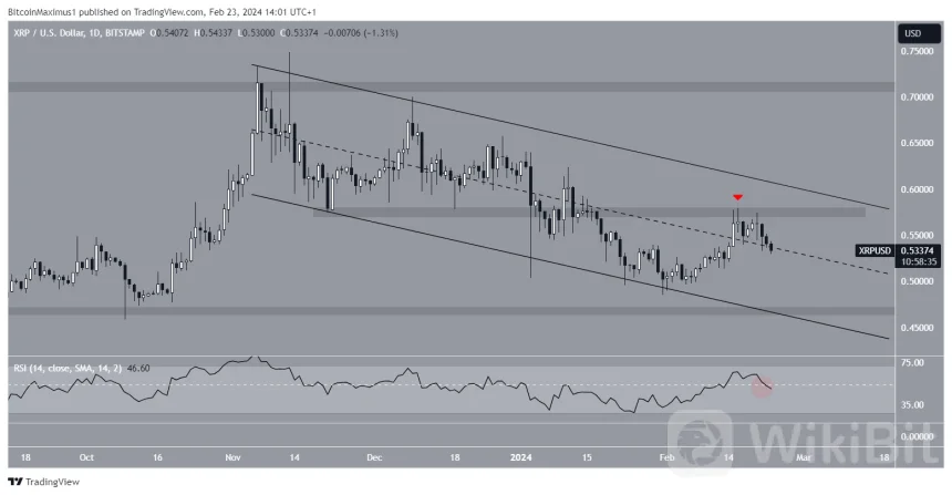 The technical analysis from the daily time frame shows the XRP price has fallen inside a descending parallel channel since November 2023. Such channels often contain corrective movements.