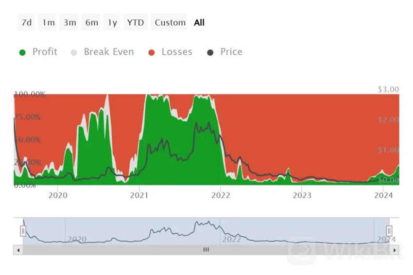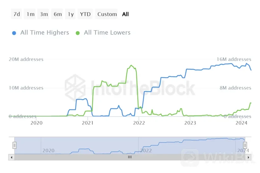 Nearly 16.1 million ALGO holders out of 20 million are underwater and will likely stay this way. In fact, Algorands price, despite being at a 16-month high, has made no dent in these statistics.