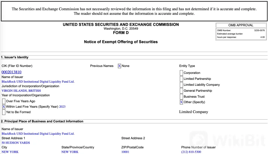 According to the filing, BlackRock created the fund in 2023, but has yet to launch it. Form D is used to obtain various exemptions. BlackRock indicated that it is seeking an exemption under the Investment Company Act Section 3(c), which exempts it from certain SEC regulations. The fund was created under the jurisdiction of the British Virgin Islands.