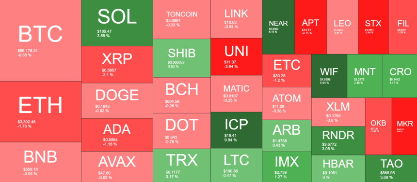 In contrast, SOL is up by 3.5% and sits close to $190. NEAR and WIF have gained 6% each, while ICP has soared by almost 10%. As a result, ICP now trades above $18.
