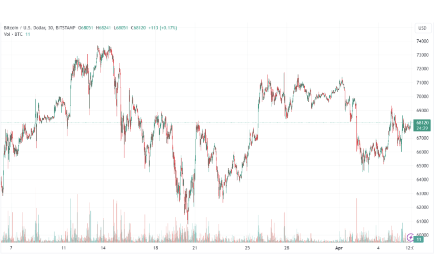 One cannot discuss major coins without mentioning Bitcoin. The most significant coin has been going up substantially. As of April 5, 2024, its price had dropped 4.16% in the last week, hitting $67,693. Technical analysis of Bitcoin indicates that market sentiment is neutral to bullish, as we can also see a 6.29% price rise in the last 30 days.