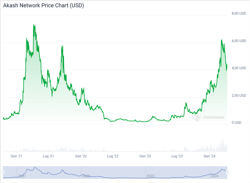 Speculatively, AKT has benefited in recent months from the hype surrounding AI narrativeand the general rise in computational energy and microchips sectors, reaching a fivefold increase in its price since the beginning of October.