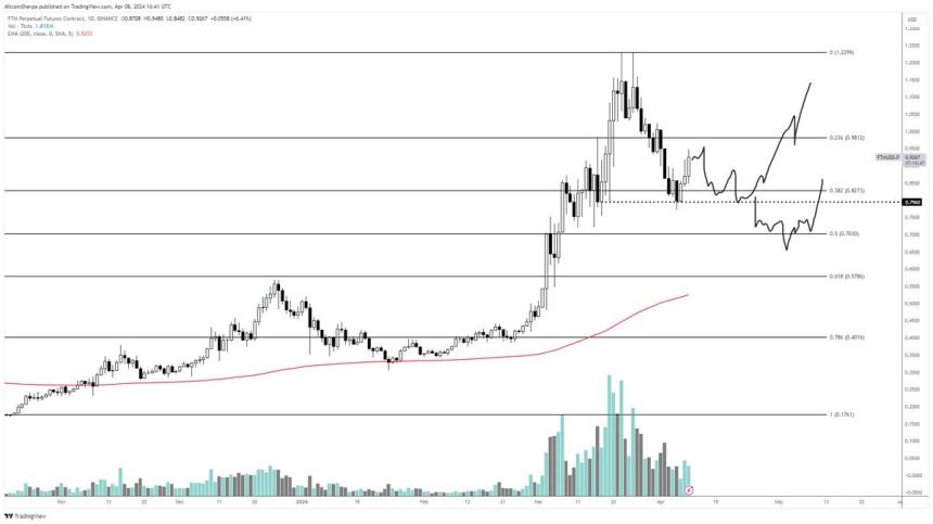 Looking at his chart, the trader suggests Fantom could dip to the Fibonacci retracement level around $0.80 before rallying to $1.15.