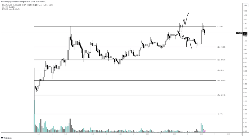 Next up, the trader predicts Ethena (ENA), a governance token launched by Ethena Labs for the projects DeFi protocol, will break out after a period of consolidation around the $1.24 level.