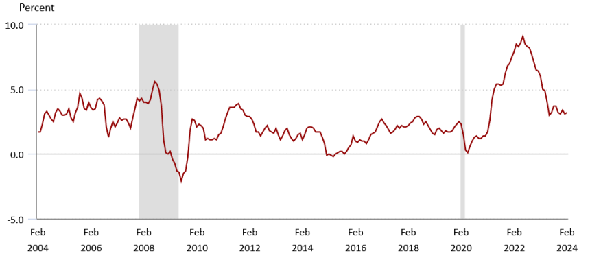 Fortunately, CPI inflation started trending downward after June 2022, bottoming out at around 3% in June 2023. Since then, monthly figures have hovered around the 3% range.