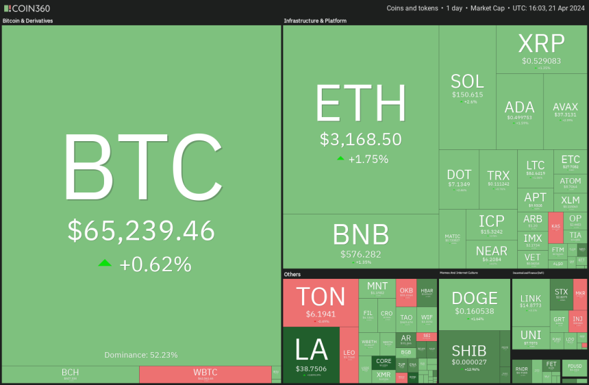 Bitcoin (BTC) recovered sharply from the intra-week lows and is likely to close the halving week with a minor loss of roughly 1%. According to Farside Investors data, the spot Bitcoin exchange-traded funds witnessed an inflow of $30.4 million a day before the halving, halting the five successive days of outflows.