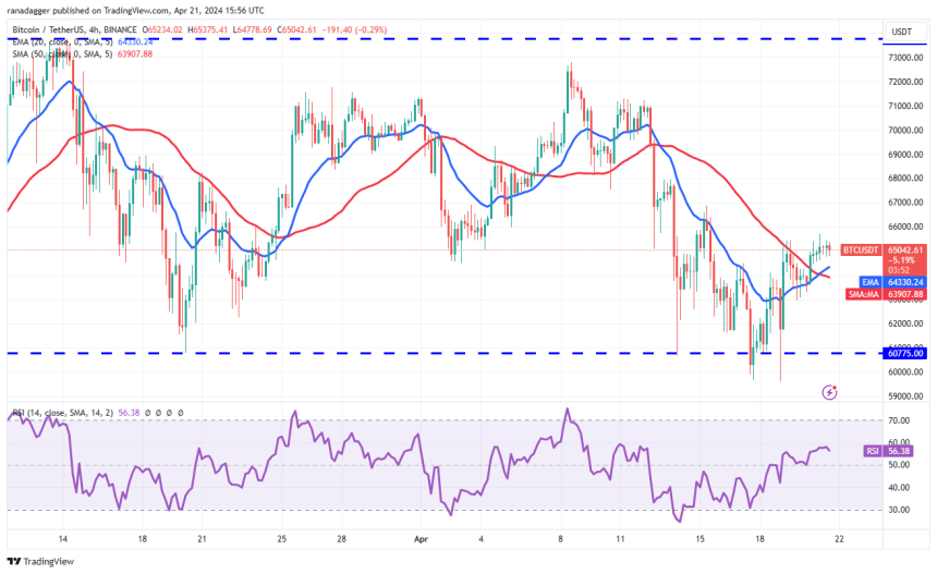 Bitcoins recovery has reached the 20-day exponential moving average ($65,850), an important level to keep an eye on.