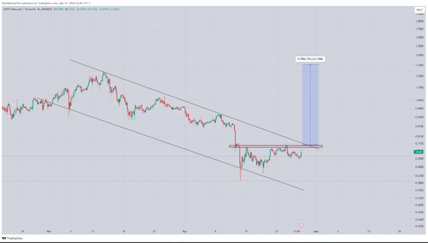 Analysts like World of Charts point to the descending channel pattern on MATIC‘s daily chart, a classic indicator of a bearish trend. For a true price recovery, MATIC needs to overcome a crucial hurdle: the $0.77 resistance level. A breakout above this point could trigger a significant bull run to the $1 dollar level, but the climb won’t be easy.