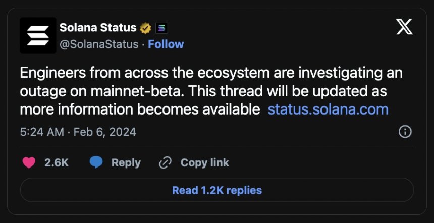 Solana's network crashed most recently in February. Source: X