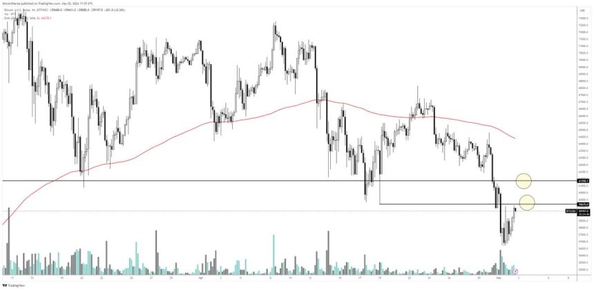 “BTC: don‘t think we’re out of the woods at all yet. We still need to reclaim some levels. [May 2nds] altcoin action is nice but I would not go all in at these current levels. Wait for BTC to show more strength first and break $60,000+ in my opinion.”