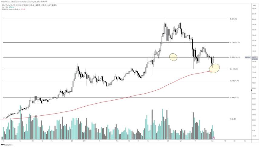 Next up, the analyst says that Ethereum (ETH) competitor Solana (SOL) may correct in the near term to as low as $116 based on his chart of Fibonacci retracement levels, but could rally within months.