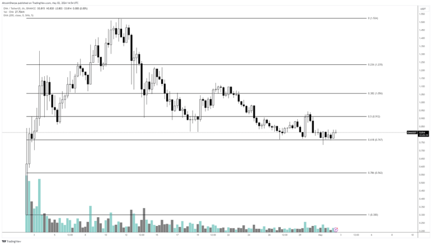 Lastly, the analyst says says that the governance token of the decentralized finance protocol Ethena (ENA) appears likely extend its upward momentum after retesting the Fibonacci retracement level at $0.76.