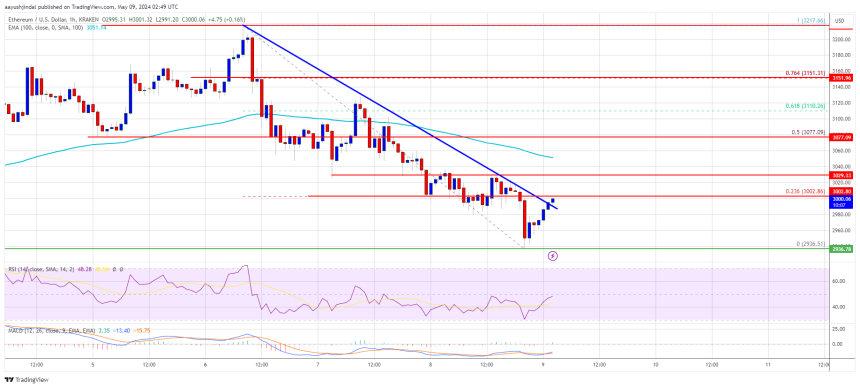 Ethereum price is extended losses and tested the $2,940 support. ETH could start a fresh increase if it clears the $3,000 and $3,030 resistance levels.