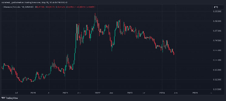 WikiBit 2024-05-16 19:02The ether-bitcoin ratio slides to a three-year low, extending year-to-date losses to nearly 16%.Seve