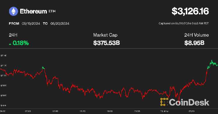 The crypto market was listless early Monday, with bitcoin (BTC), the biggest digital asset market by value, trading flat at $67,156 and ether (ETH) changing hands at $3,127, according to CoinDesk Indices data.