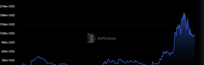 1 Stacks protocol (STX) declined from $180 Million to a low of $116 Million in TVL.