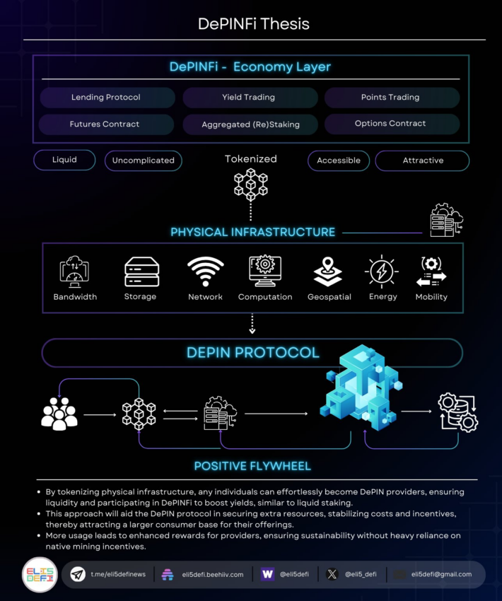 According to Eli5DeFi, a notable Web3 analyst, DePinFi proposes a compelling remedy to these issues. By tokenizing physical infrastructure, DePinFi enables individuals to easily become DePin providers, ensuring liquidity and facilitating participation in DePinFi to boost yields, similar to liquid staking.