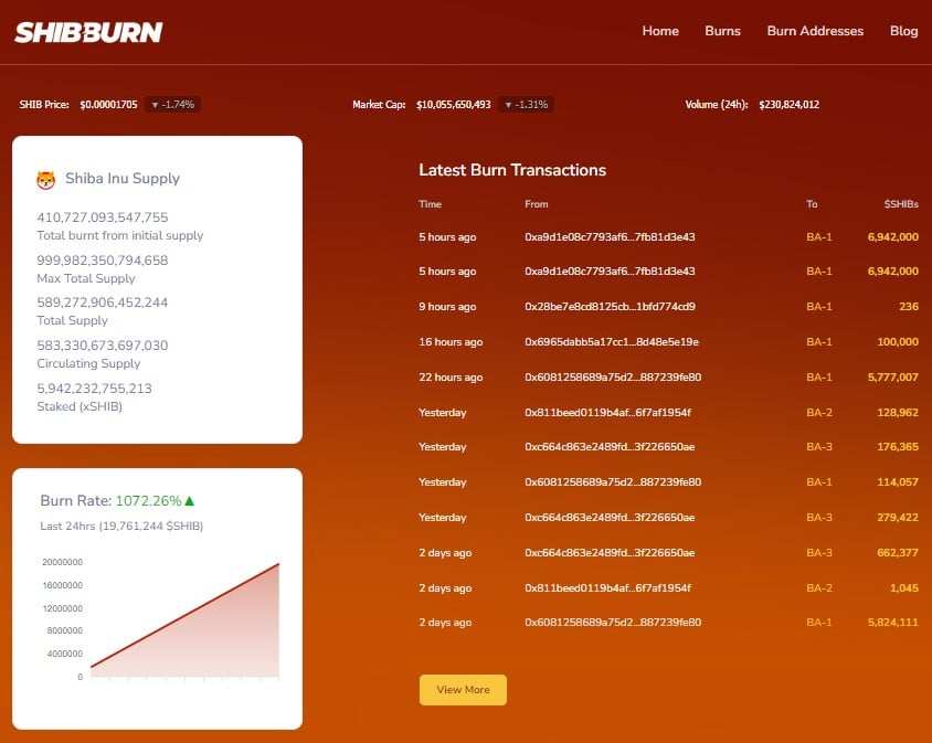 Shiba Inu (SHIB) has seen a massive blowout in its burn rate, which jumped by more than 1,072% in 24 hours. Per data from Shibburn, this burn rate has seen a total of 19,761,244 SHIB erased from circulation.
