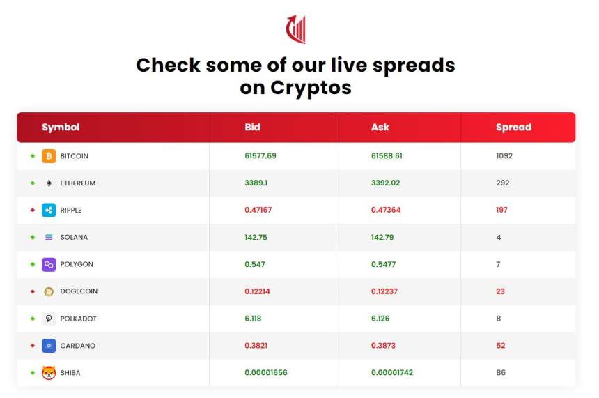 RaiseFX provides traders with access to a variety of cryptocurrencies for trading purposes. This includes popular cryptocurrencies such as Bitcoin, Ethereum, Ripple, Solana, Polygon, Dogecoin, Polkadot, Cardano, and Shiba. The availability of these cryptocurrencies offers traders a range of options to diversify their portfolios and potentially take advantage of fluctuations in the cryptocurrency markets.