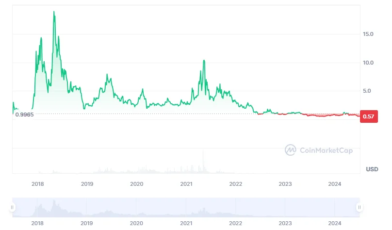 EOS is a fully decentralized network that supports the development, hosting, and execution of large-scale decentralized applications (dApps), offering significant advantages in scalability and user experience. The cryptocurrency entered the crypto market in 2017 and has experienced a significant journey, including a record-breaking $4 billion Initial Coin Offering (ICO). Despite its initial promise as an “Ethereum killer,” it has faced various challenges impacting its market performance and reputation.