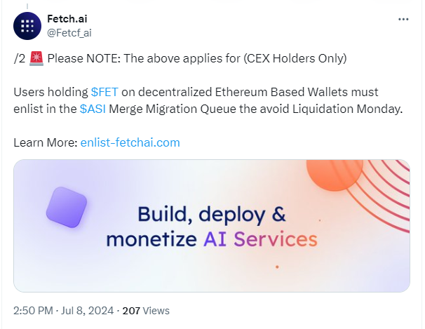 WikiBit 2024-07-09 05:04FET token holders on decentralized Ethereum wallets face a critical deadline to participate in the A