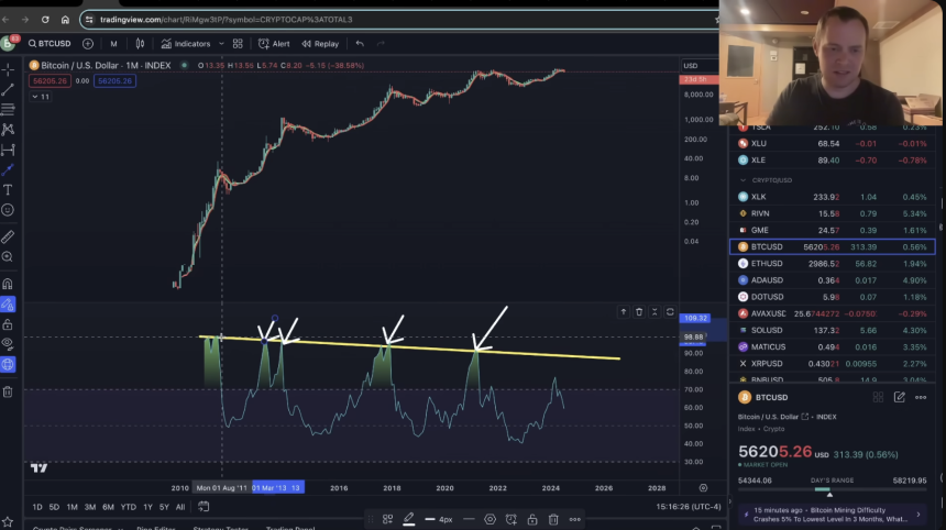 In a new video update, crypto strategist Benjamin Cowen tells his 803,000 YouTube subscribers that the crypto kings relative strength index (RSI) – a momentum oscillator used to analyze whether an asset is overbought or oversold – is giving “uncomfortable” vibes.