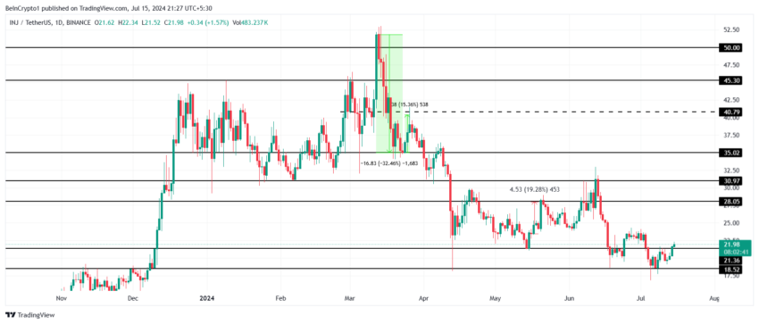 WikiBit 2024-07-16 05:11Injectives (INJ) price, which is trading at $22, is breaching past a crucial resistance level that i