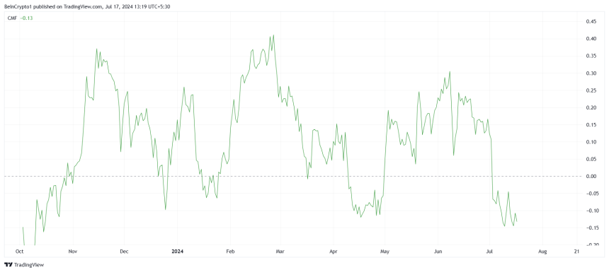BANANAs price is rallying owing to the Chaikin Money Flow (CMF) indicator, which shows a notable increase in outflows. This pattern suggests that, despite the ongoing rally, significant capital is leaving the market.